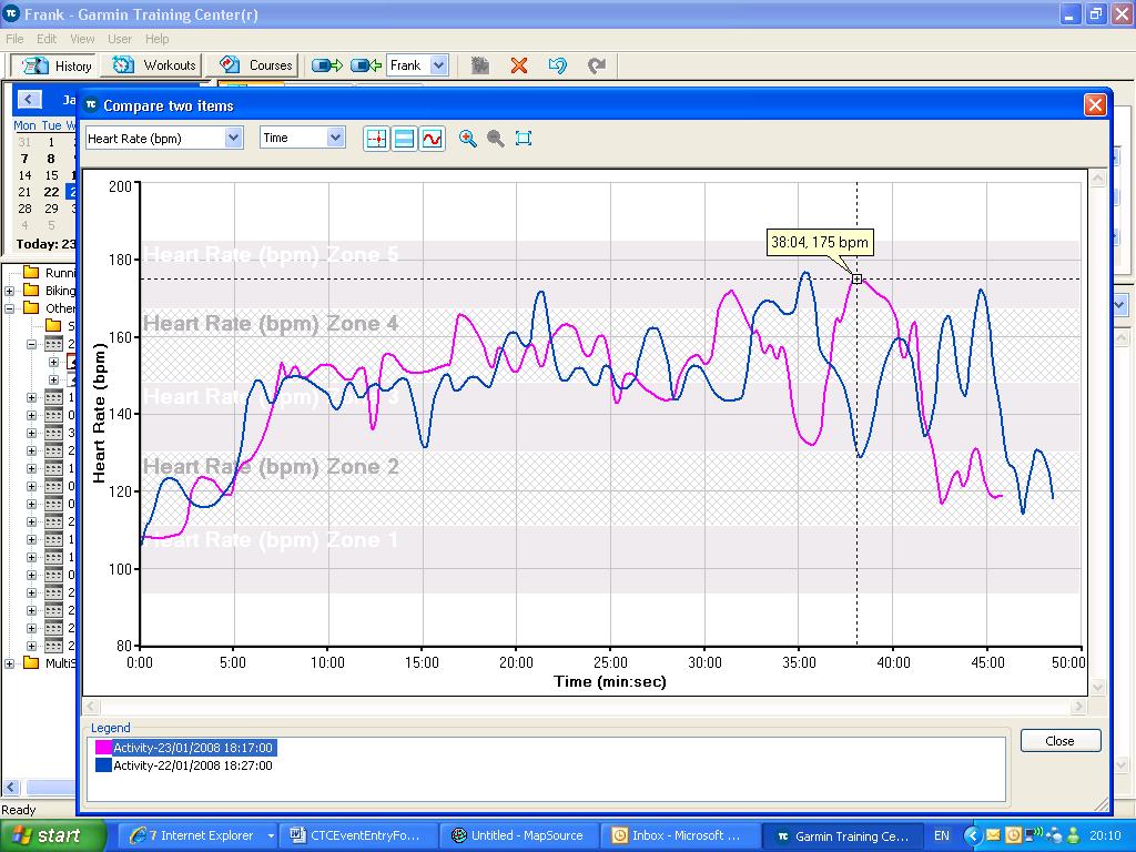 The overlay of two of Louises,s classes is a good comparison as the structure of the classes is basically the same and it is basically down to how hard I want to push myself on a given day.