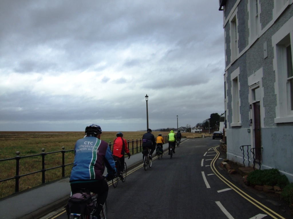 What a ride this turned out to be. Splits all over the place. First stop was at Deeside Industrial estate when David broke his chain. Peter stayed with him as they called in at the Eureka sports shop. The rest of us headed out to the rail bridge and up to Northop Lights. Here the group split with Clive and three others making it through the lights and the rest of us stuck.
