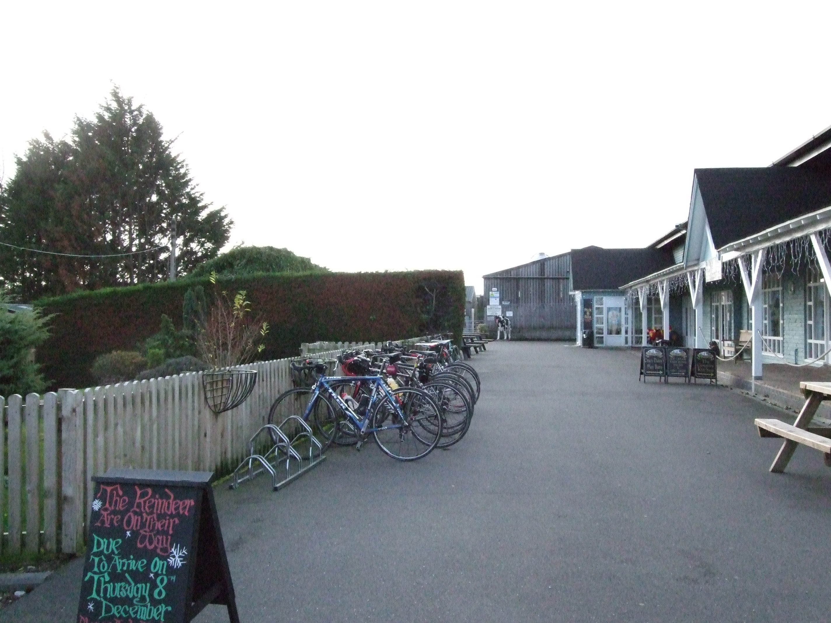 Tagged along with the CTC on the trip back to the Eureka and got held up by the cows crossing the lane going to get milked. One stood there looking at us for a couple of minutes, must be the dayglo jackets.