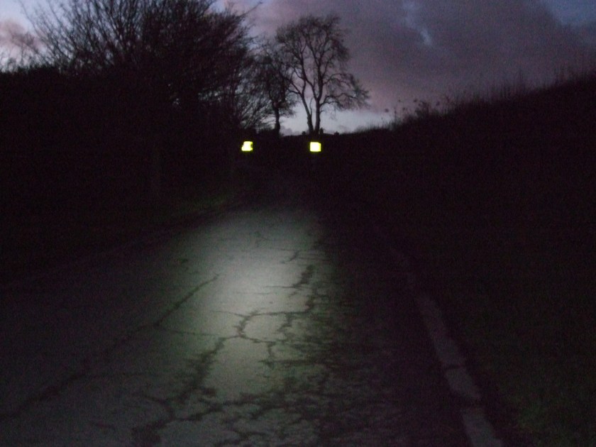 Another chance to test the MagicShine copy at the end of the ride, low light photography being an art I haven’t mastered. The 30 mph signs don’t come out well in this picture.