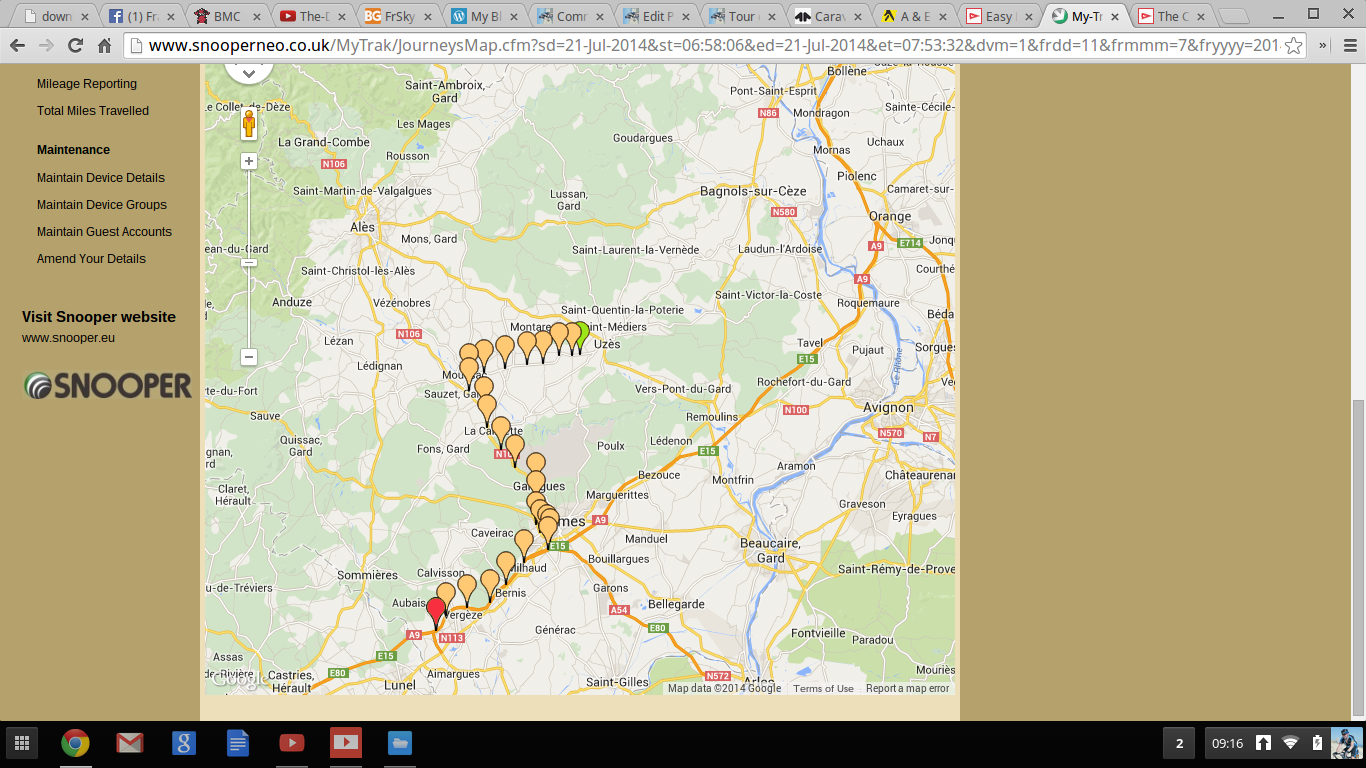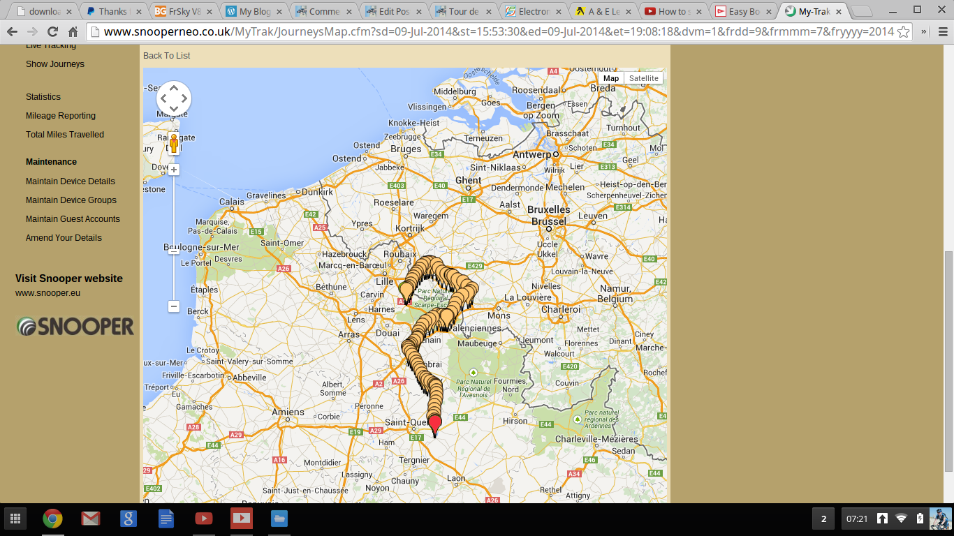 Can’t fault the Snooper 9500 other than the fact that France does not do DAB very much. I could have done with the race radio frequency but the app was just as good. It’s nice to know the tracker is there working away in the background. From the start other than Crystal Palace there where only 3 sites booked and that was at last minute with a few complications.